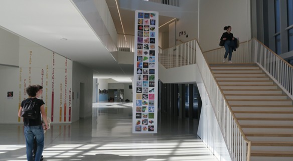 De l’imaginaire de l’artiste, avec le temps de l’apprentissage des techniques, une langue à apprendre pour qui n’a jamais touché terre, à cette installation à l’échelle du grand hall, en passant par la science des matériaux, ce fut une aventure pour l’artiste, les enseignants, les élèves.